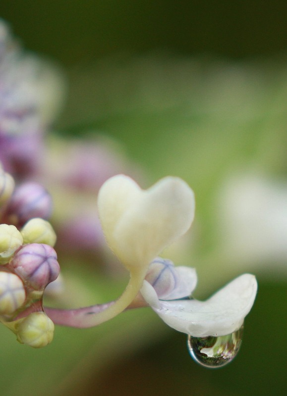 紫陽花の、咲きかけを見にいきました。